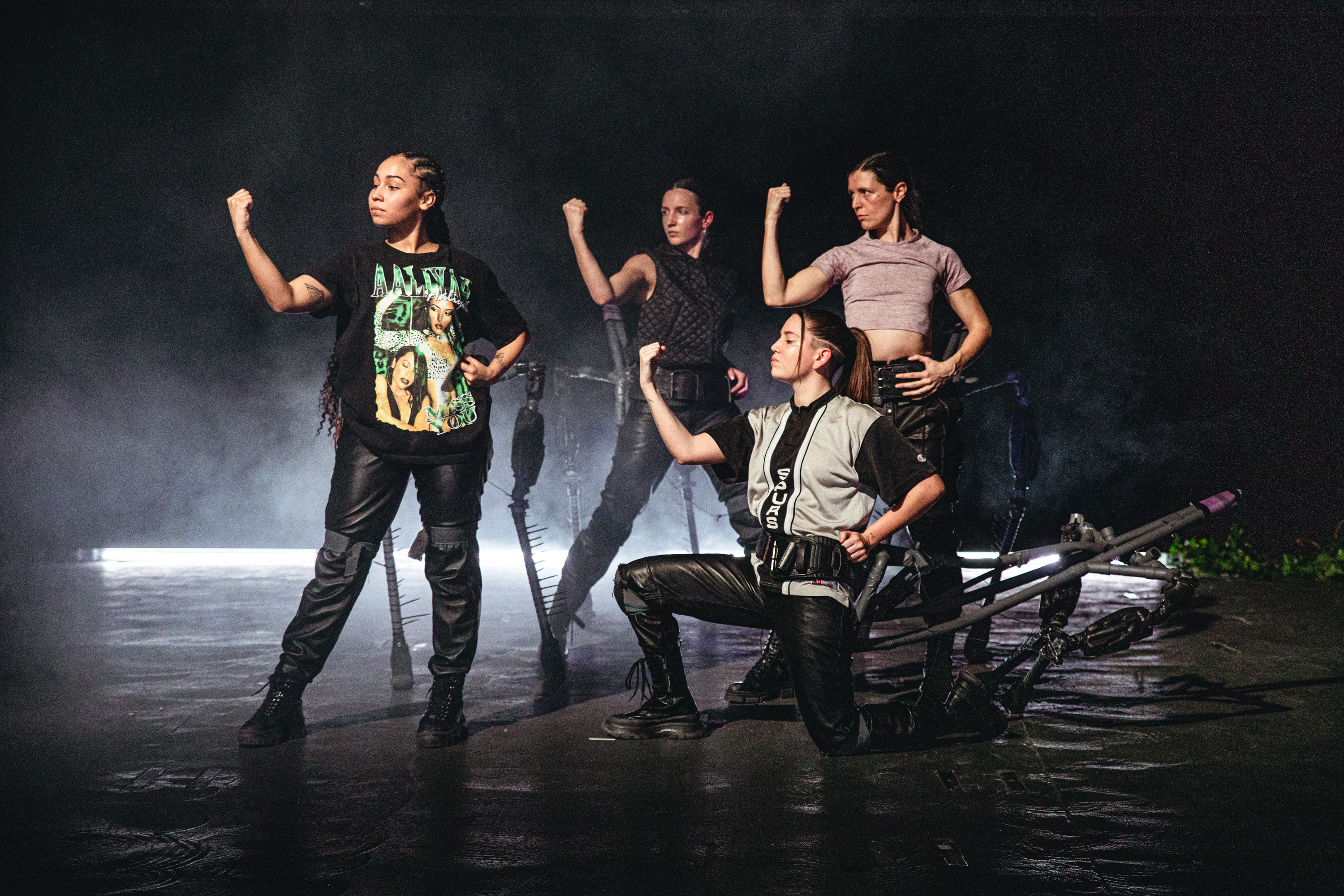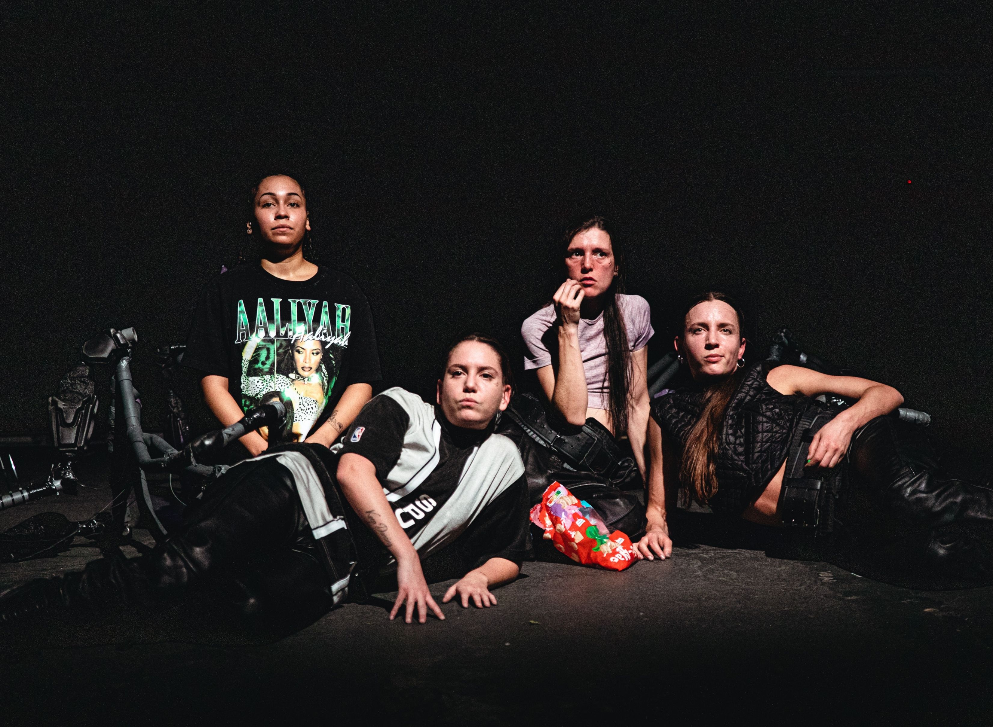 Dans un rituel joyeux et anarchique, les quatre centauresses-cyborgs, dompteuses de frousses et de contraintes, pulvérisent la morosité rampante et défient l’avenir, intrépides et fières!