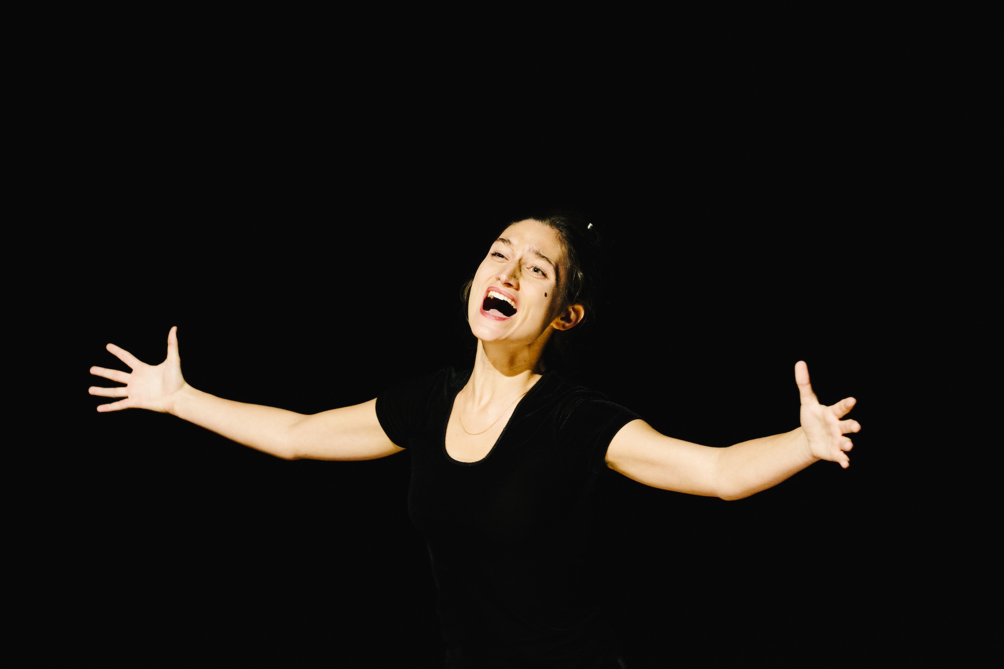 Notre corps est constitué de nombreux autres corps: ceux que nous avons copiés, imités, admirés, aimés, haïs. Sur scène Flora Détraz incarne une sorte de cantatrice sur le retour qui joue avec les codes de la représentation: préparation, salutation au pianiste imaginaire, climax…